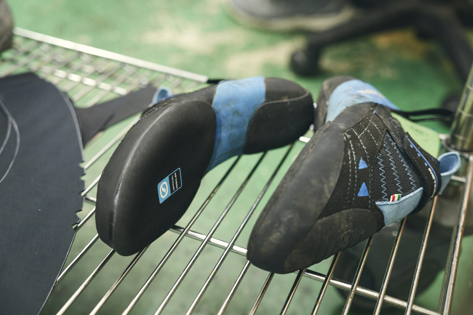素足に近い感覚でダイレクトに岩を捉えるフィーリングや、5本の足指をひとつに結集させる力感は、クライミングシューズにとっては生命線。それを肌感覚で理解しているクライマーが、腕利きの修理人であるなら、まさに鬼に金棒だ。