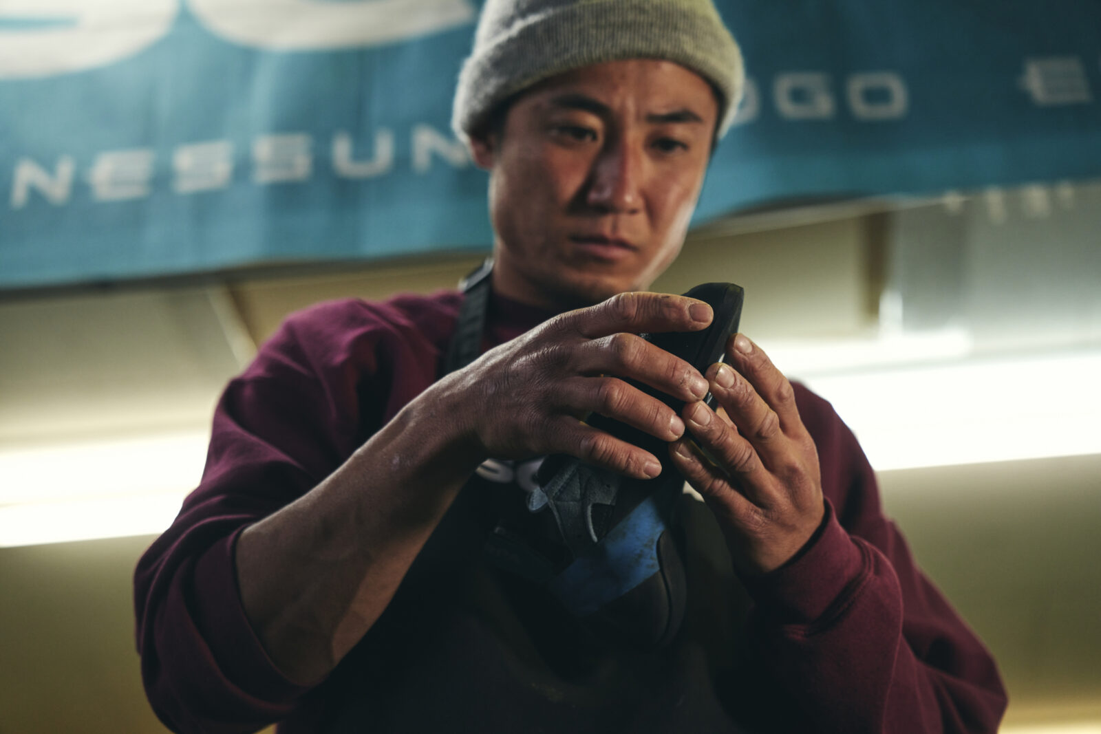 そう語る許山のポテンシャルには、大いに期待が寄せられている。リソールの技術を知り尽くした砂田の全面的な協力のもと、実力派クライマーとして培った肌感覚を生かしながら、クライミングシューズの修理に取り組む。そんな修理人はほかにいないだろう。