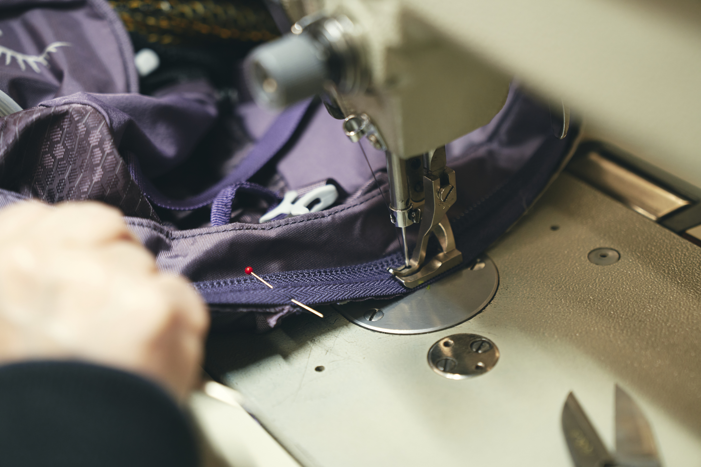 「縫製修理」担当とは、生地の破れや穴あき、ファスナーやバックルの交換など、針と糸を使って修理を行う部署である。